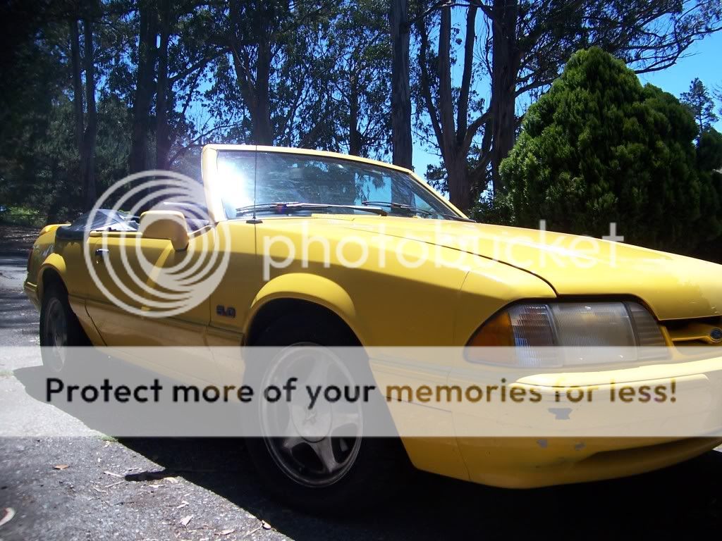 Among the last batch of 5.0's off the line in Dearborn MI were these limited edition yellow convertible LX's. There were 1503 of these cars built. This car came with a yellow spoiler replacing the luggage rack. Also unique to this yellow LX were chromed Pony rims.