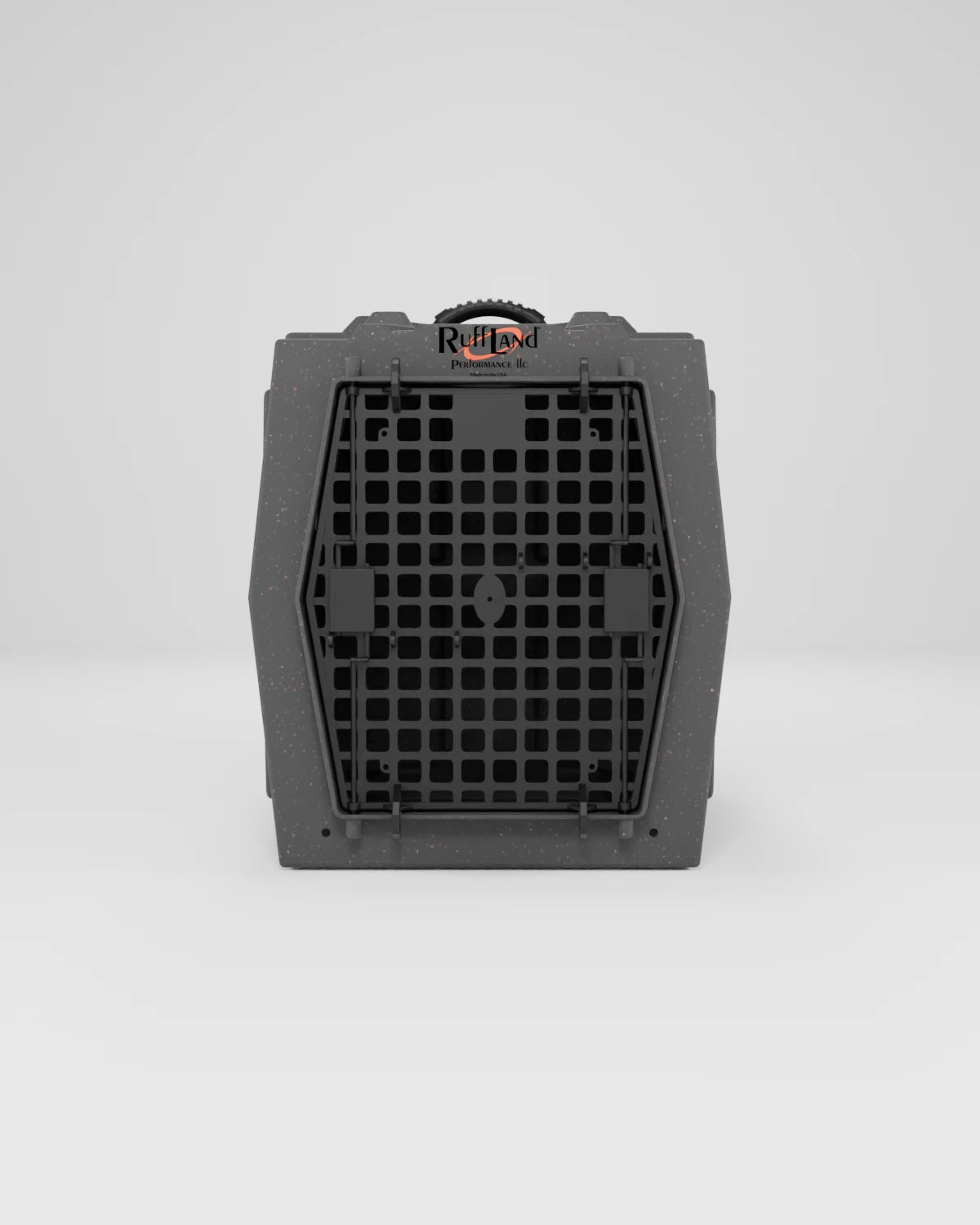 Ruffland dog kennel, intermediate size with double doors. Front and right side model. Includes Ruffland insulated cover with access to both doors. Like new condition, only used for 3 weeks.