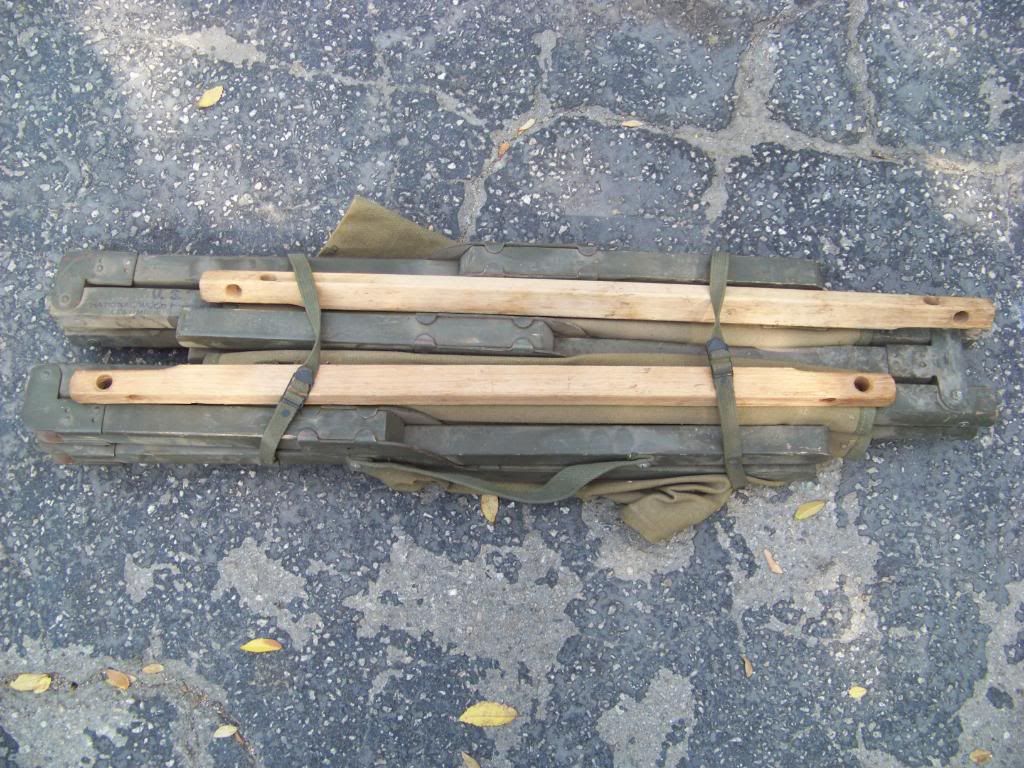 I have a couple dozen cots that are USGI surplus from 1952,1953, and 1966. All of them are in good shape. Some have OD painted wood, while others have unfinished wood. Here is what they look like: