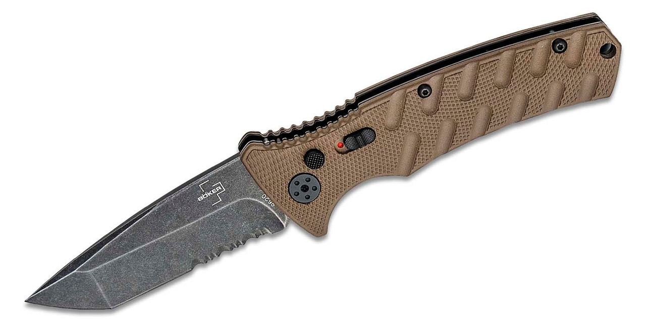 BOKER Plus Strike Tanto serrated, push button-Non Auto.