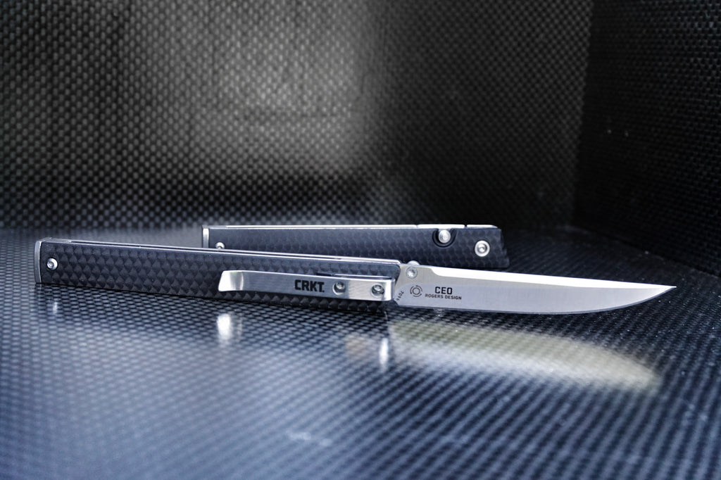 This is the CRKT production of our Executive model. It features the IKBS(TM) ball bearing pivot system, high carbon stainless steel blade (8Cr13MoV), tough glass reinforced nylon handle. It weighs just a smidge over 2 ounces, blade length is 3.1 inches, and has a tip-down deep pocket clip.