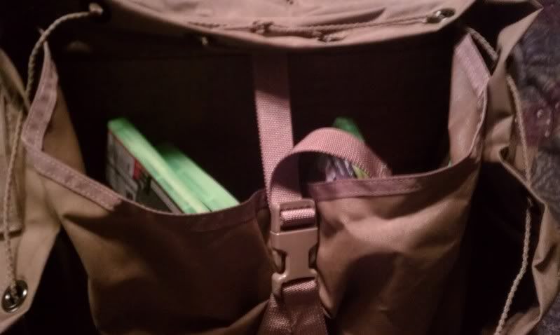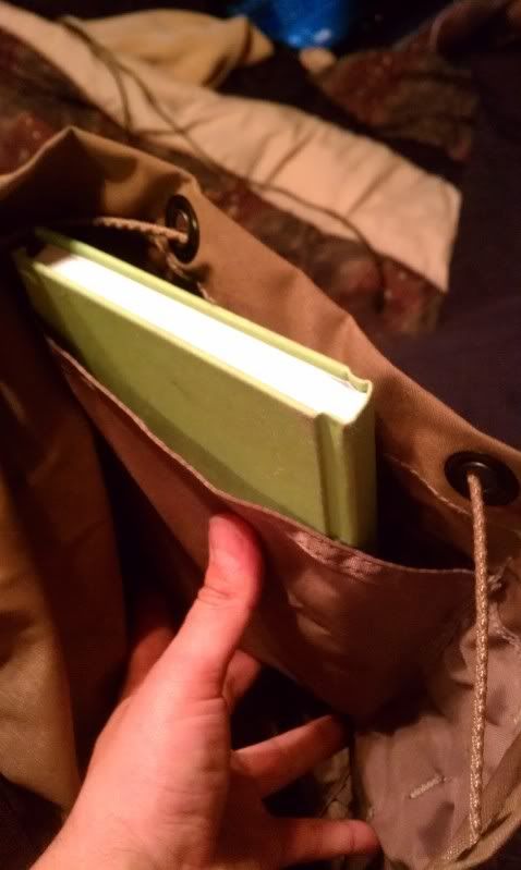 I threw in X-box games so you can get a reference for the size. I couldnt think of anything else on hand that would help out. The radio pocket is improved also as its snapped together with a plastic belt fastner and is more squared than the old one. ITs also shallow which I assume is more for the manpack. This makes it convenient to store your toiletries or other smaller objects that need to be seperated from the main pack.
