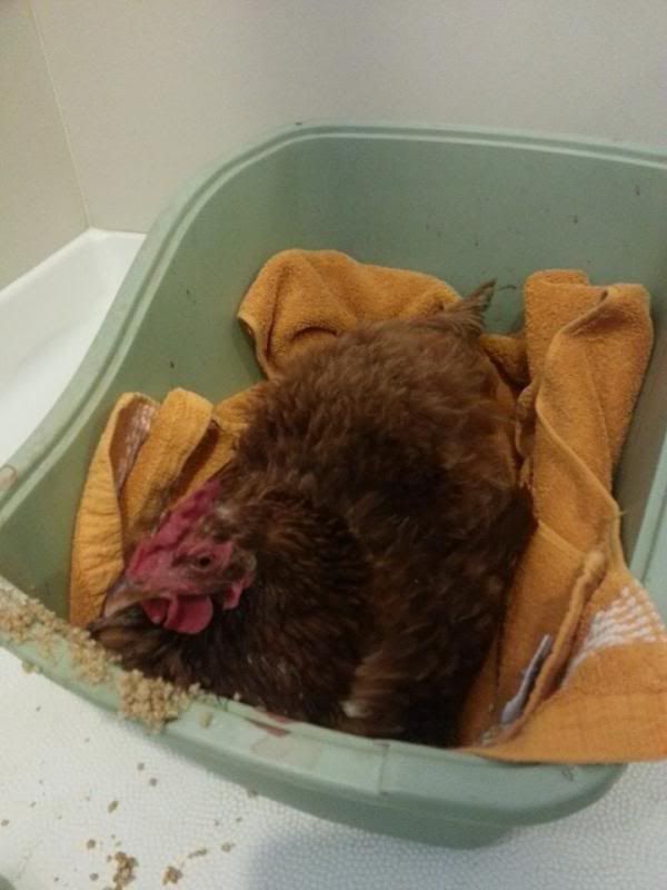 Kept her over night in the bathroom resting in a box and towels. she pooped some more and fed her some water with vitamin electrolytes and a little bit of crumble.