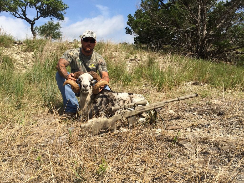 A bit about the hunt, it was sponsored by an awesome organization called Freedom Care Warrior Project. Awesome folks and a great organization. They took myself and two other vets out for the weekend and fed us the whole time. I shot this painted desert sheep, and the other two guys shot Catalinas. We saw all kinds of animals out there. Beautiful ranch and our guide David was great. I chased this ram all over Saturday. Had a perfectly clear shot earlier in the day, he was up on a hillside about 350 yards away and nothing in the way. Except the giant ravine between us haha. I asked the guide how close we could get with the ranger and he said were there. I didn't feel like climbing that steep mountain with a bloody dressed ram on my shoulders so the chase continues. Caught up with him a bit later and had about a hundred and seventy yard shot. He was between two trees and quartering hard away. I could see his shoulder and rear end so I took the shot. The camera guy caught him on film going down about thirty yards away. Oh yeah, they filmed all weekend and will be airing the hunt on tv sometime in October/November. So that's pretty cool.