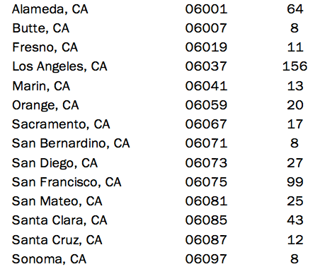 In the DHS document linked in the article, these California counties are listed as 'Terrorism Hot Spots'.