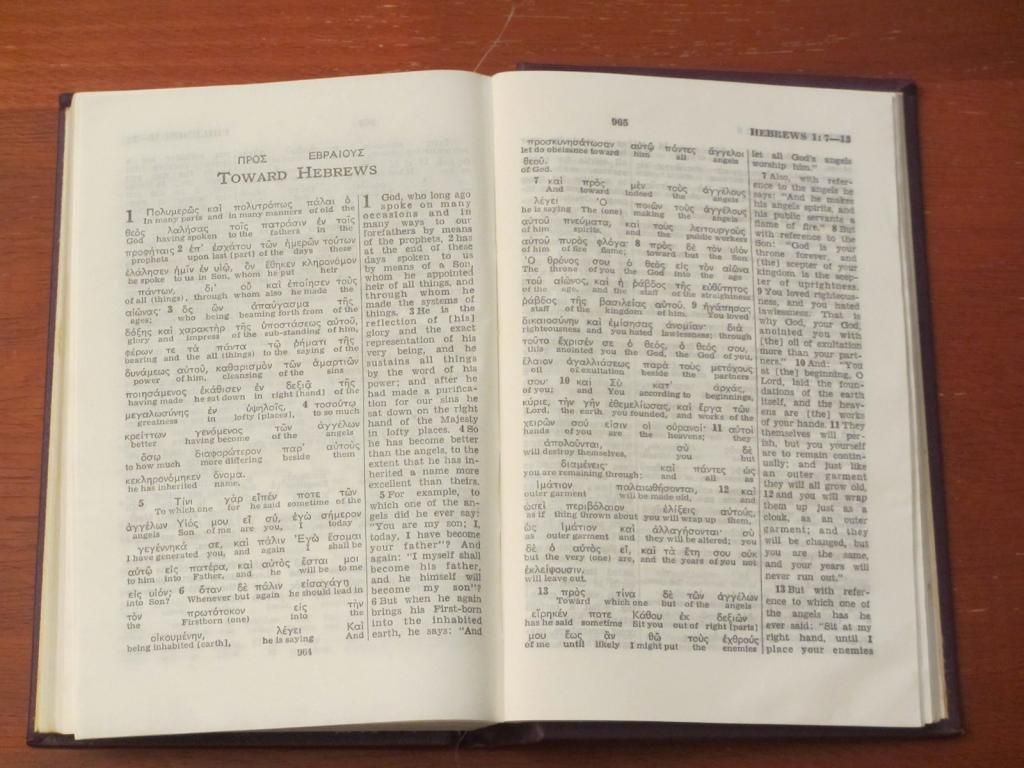 The Kingdom Interlinear Edition; both Greek and English translation: